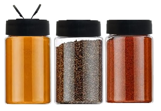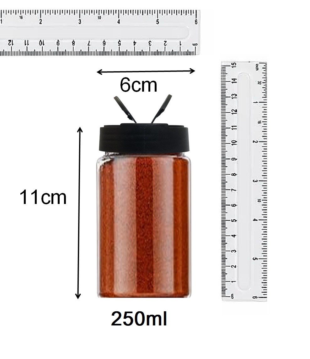 Masala Spice Jars with sprinkle holes & pour spouts in lid 250ml For spices & herbs